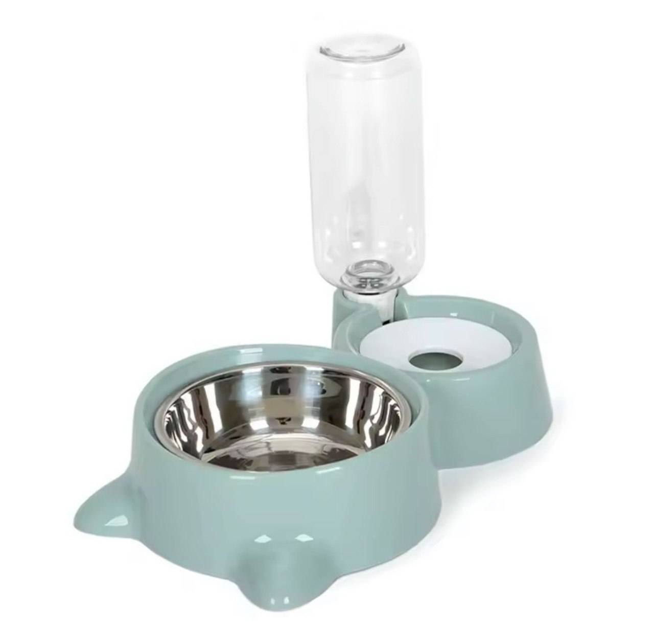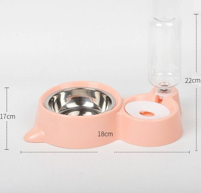 El comedero y bebedero para mascotas con botella es ideal para mantener a tu peludo bien alimentado e hidratado. Su sistema de agua ayuda a evitar que se mojen los bigotes, manteniendo todo más limpio y cómodo.