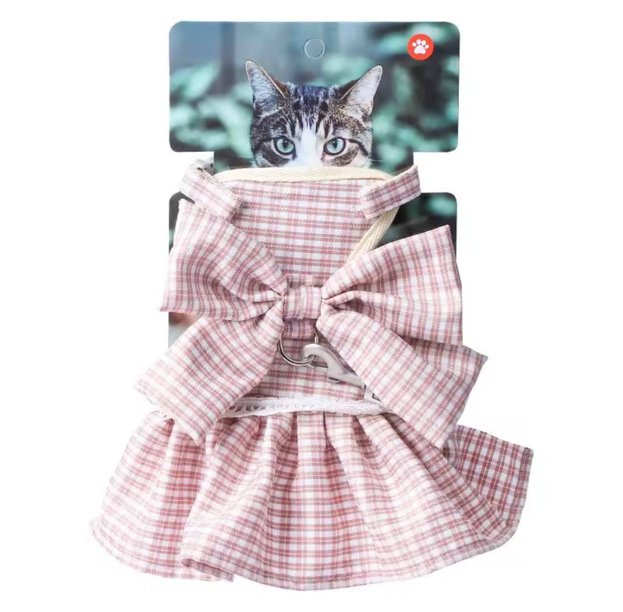 La pechera con correa para gatos y perros pequeños tipo vestido combina seguridad y estilo. Ideal para peluditos pequeños, brinda comodidad y un look adorable en cada paseo.